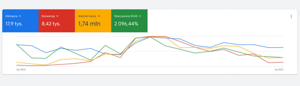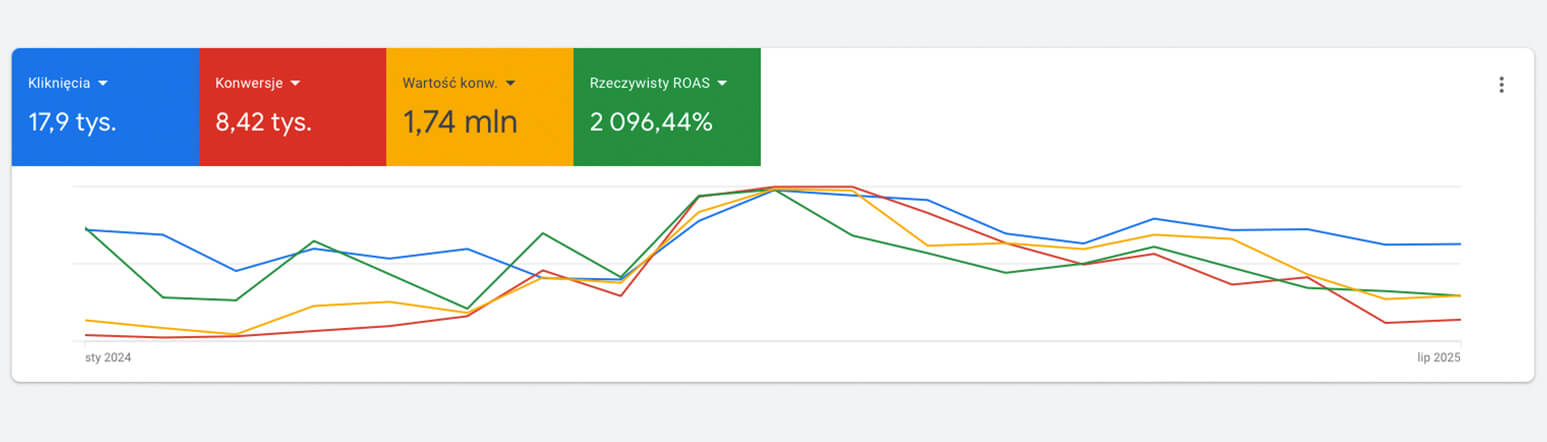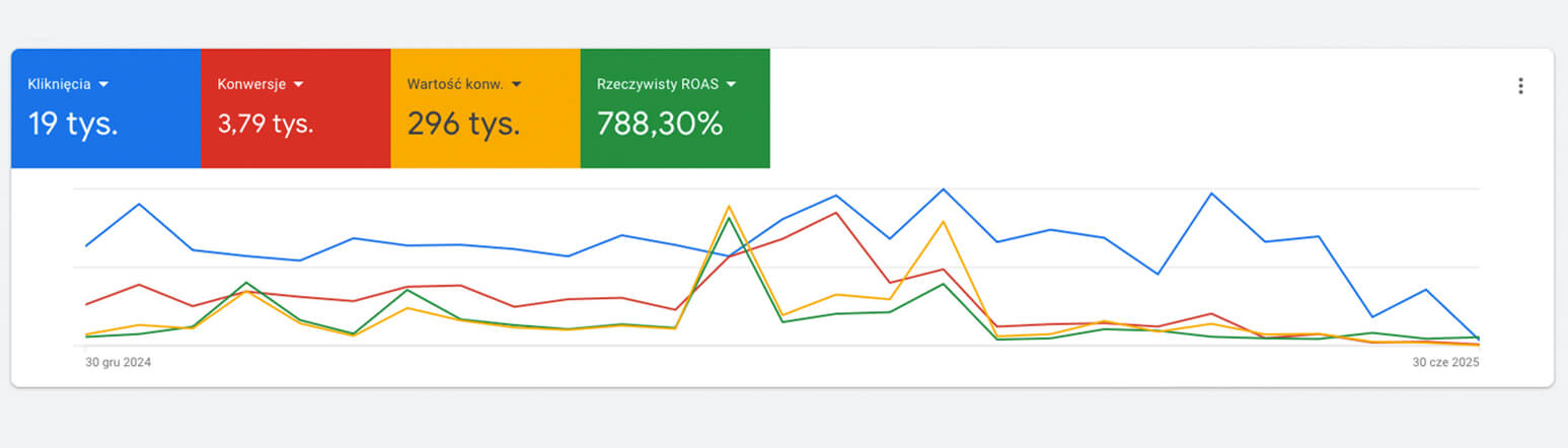Tworzymy kampanie reklamowe na podstawie celów naszych klientów tj. sprzedaż, leady, rozgłos, zdobywanie nowych klientów. Zajmujemy się całym procesem tworzenia kampanii Google Ads od doboru słów kluczowych po tworzenie reklam. Nasze kampanie są niezwykle skuteczne i docierają do grupy docelowej, zainteresowanej produktami i usługami firmy, która nawiązała z nami współpracę. Mamy wieloletnie doświadczenie w optymalizacji kampanii reklamowych i pomaganiu w rozwoju firmom internetowym. Nie poprzestajemy na małym i nieustannie optymalizujemy kampanie Google Ads w celu poprawy ich skuteczności. Dokładnie wiemy, jaką wartość handlową wnoszą nasze kampanie dla naszych klientów.